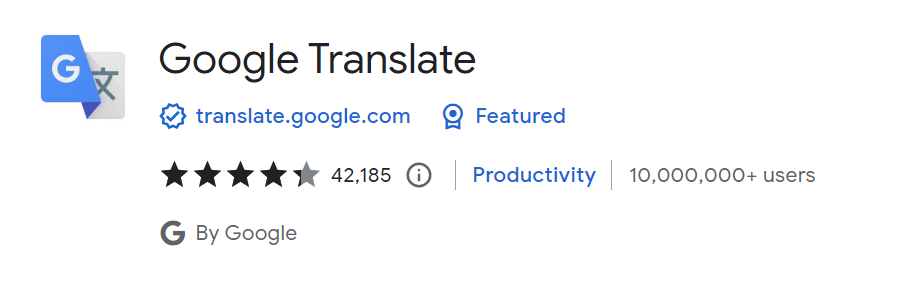 Google Translate sin utvidelse (Chrome)