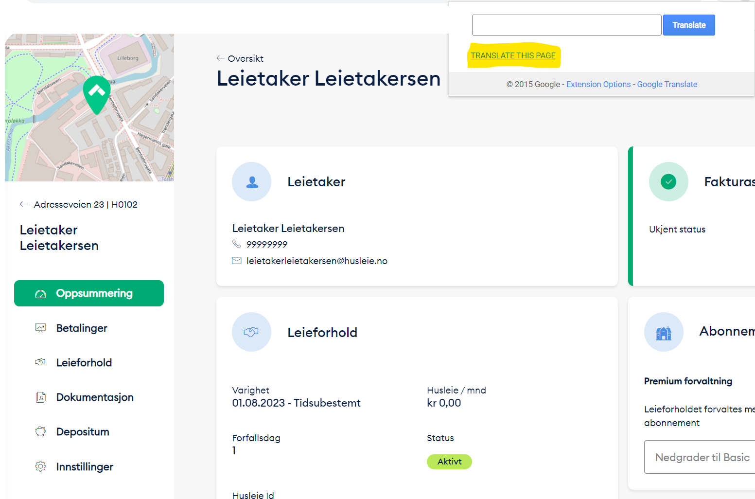 Da vil du kunne se og bruke tjenesten vår i et annet språk. Merk at dette er en tredjepart tjeneste og Husleie.no kan ikke gå god for kvaliteten av oversettingene.